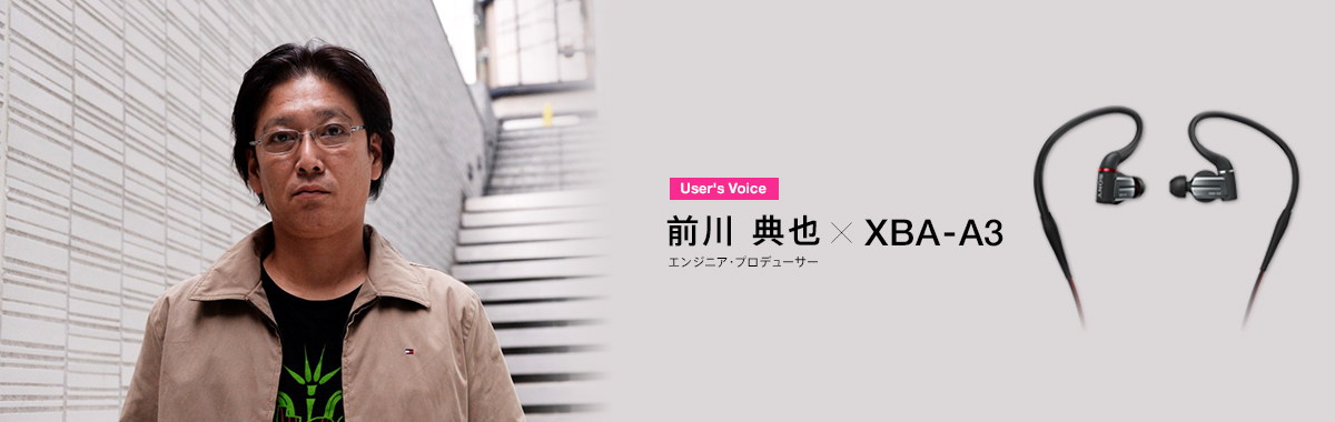 (まずは付属のヘッドホンケーブルでXBA-A3を試聴して)なるほど、これはすごいですね。レンジが広くて、無理なく音が鳴らされている感じ。生音のアコースティック・サウンドの粒立ちが細かく聴こえてくるし、打ち込みの音の低温域の解像度が素晴らしいです。今までにないレベルのインナータイプのヘッドホンですね。リヴァーヴの粒子も聴こえるし、ほとんどスタジオでモニタしている感じに近いです。うん、すごい。