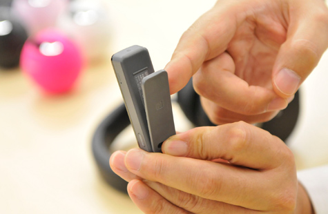 「アプリ開発は……とても簡単でしたね(笑) この"N"マークが付いているところにタグが埋め込まれていて、Bluetoothのアドレスや名前、サポートしているプロファイルといった情報が書かれていて、携帯をかざす時に読み取り、従来手でやっていた作業を自動的にやるもので、それほど技術的に難しいことではありませんでした。AndroidTMの場合はフレームワークが用意されているので、それを組み合わせることで実装しています。」