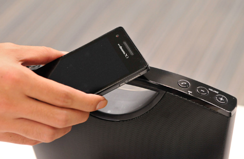 既に店頭に並んでいるNFC対応のスピーカー、ヘッドホンと、NFC内蔵のソニー・モバイル・コミュニケーションズの最新スマートフォンXperia AXを用意して「ワンタッチ接続」をトライしてみると、今までBluetoothのペアリングをするためにスマートフォンの設定画面を開いたり、ボタンの長押しをしたりと、接続までにどれほど手間がかかっていたかを思い知らされる。「ワンタッチ接続」対応機器であれば、これからはスマートフォン本体のスピーカーからヘッドホン、スピーカーと次々にタッチするだけで、出力先の切り替えが可能になる。Bluetooth対応機器のペアリングが「ワンタッチ接続」で済む利便性は、一度体験すると引き返せないほどワイヤレスによる音楽のリスニングを身近なものにしてくれる筈だ。