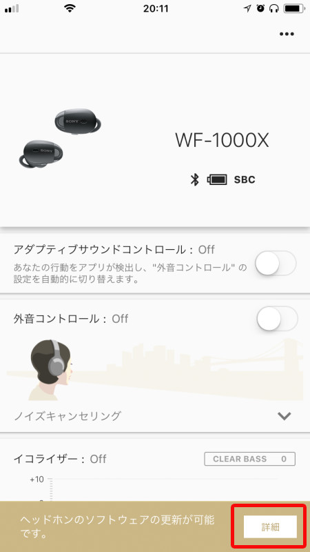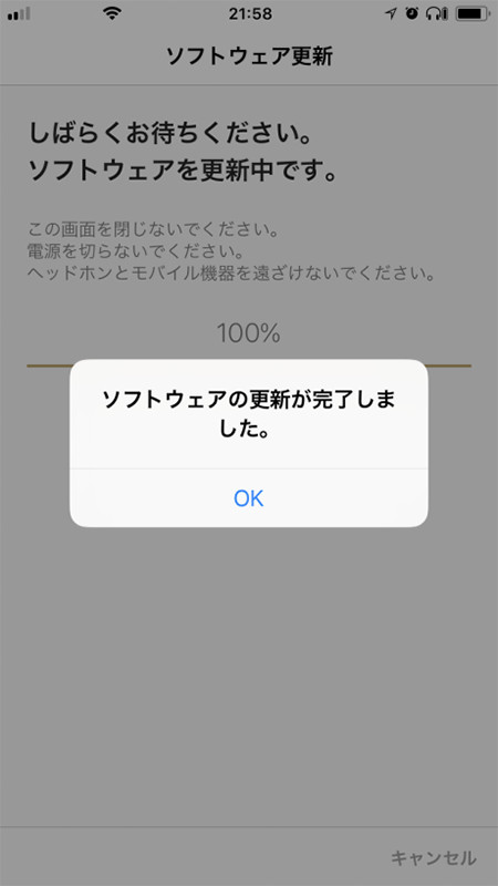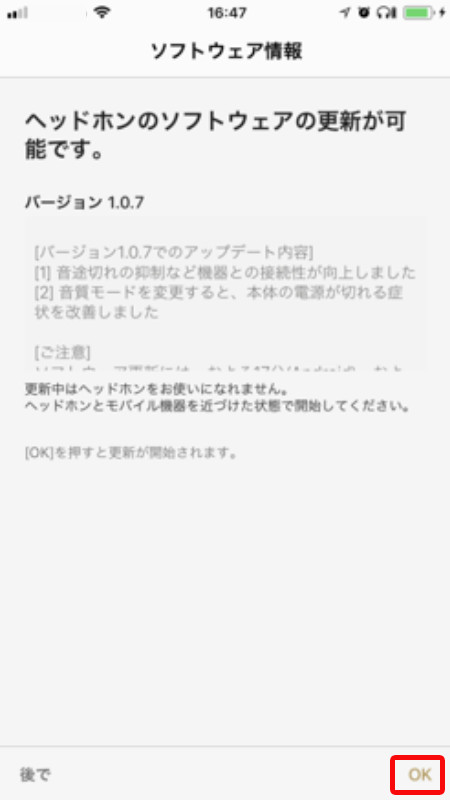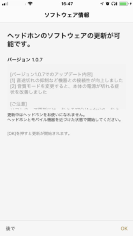 4 アップデートが存在する場合は、「ヘッドホンのソフトウェアの更新が可能です。」と表示されます。