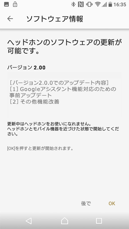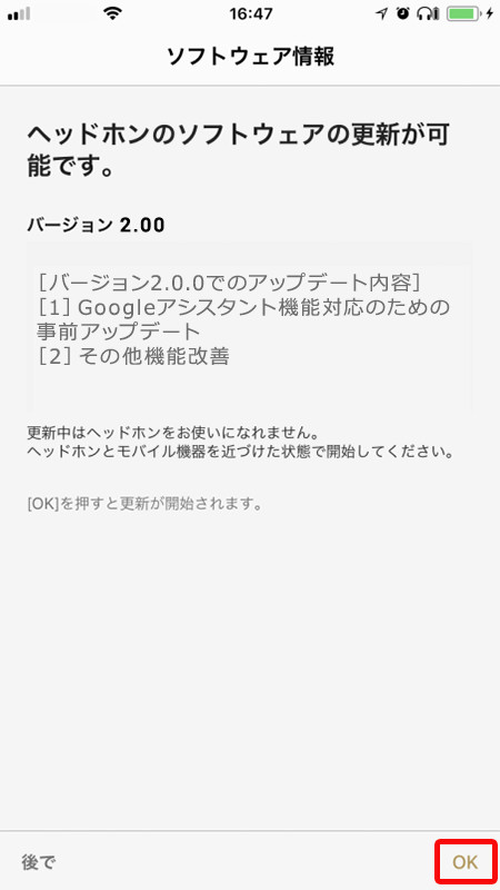 4 アップデートが存在する場合は、「ヘッドホンのソフトウェアの更新が可能です。」と表示されます。