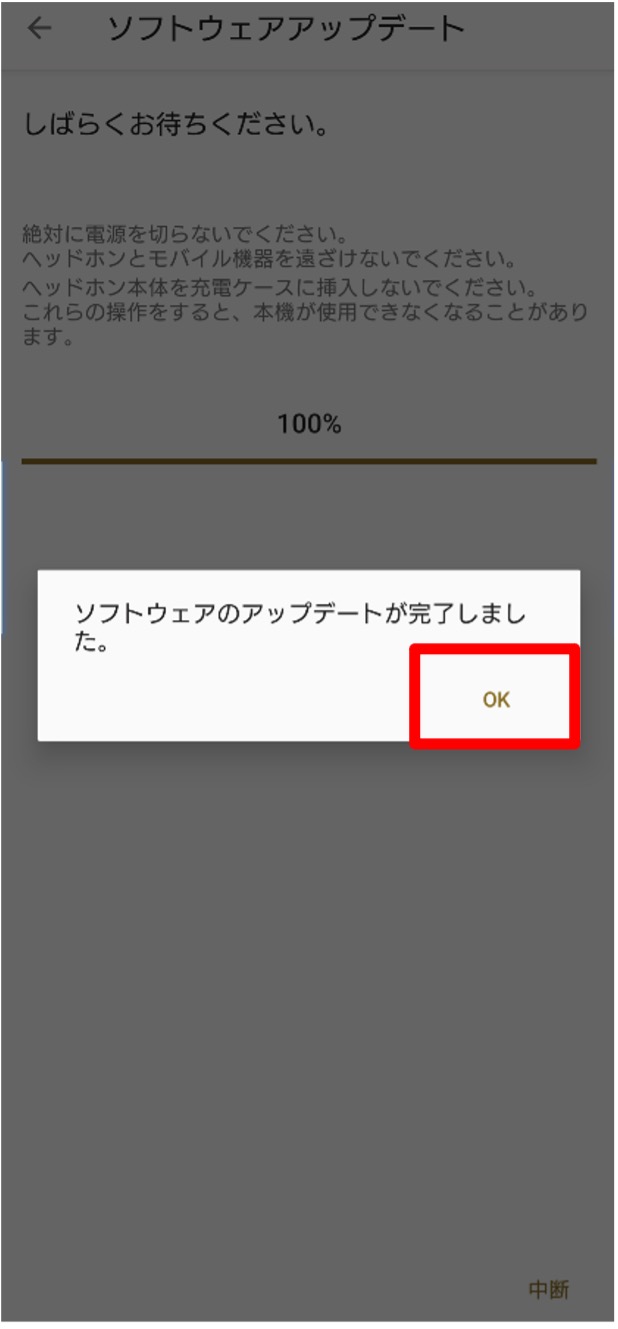 - 極力ヘッドホンとAndroid機器のBluetooth接続が安定している環境でアップデートを行って下さい。