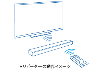 バータイプスピーカーの背面にIRリピーターを装備。テレビ用のリモコン信号を受信し、背面からテレビに向けて送信します。テレビの前に置いたときでも使いやすさを損なわず、快適にテレビ操作ができます。