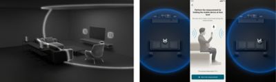 HT-A9M2は、内蔵の計測用マイクと測距音で部屋に設置したスピーカー間の距離と天井までの距離を計測し、お部屋に合わせた音場空間を自動で生成します。測距用のマイクを用意する必要もありません。さらに家具の位置や壁なのかカーテンなのか、といった部屋の音響特性も解析して最適化を行います。また、スマートフォンアプリ「BRAVIA Connect」を使えば視聴位置に合わせた音場最適化も可能です。