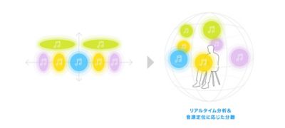 付属のリモコンに搭載されているサウンドフィールド機能をONにすることで、ソニー独自のアップミキサーにより、普段視聴しているストリーミングサービスなどの2chコンテンツでも臨場感あふれるサラウンドサウンドを体感できます。 ソニー独自の新しいアルゴリズムは、音声をリアルタイムで分析し、音源の定位に応じて音を分離・抽出します。抽出した音源を立体的に再配置することで、ステレオコンテンツであっても3Dオーディオコンテンツのような臨場感あるサラウンドサウンドを提供します。