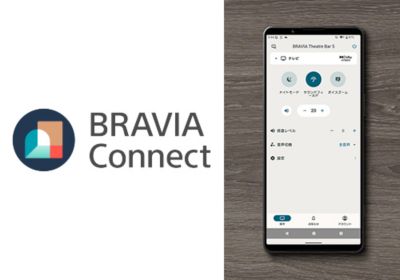 スマートフォン用アプリ「BRAVIA Connect」は、手元のスマートフォンからセットアップや困りごとの解決など、わかりやすく簡単に使えるコントロールアプリです。Xperia(TM)などのAndroid(TM)搭載スマートフォンやiPhoneにインストールすることで、リモコンが近くにない場合でも、手元のスマートフォンからすぐに機器の操作が可能です。セットアップ完了後も、アプリがおすすめの機能や設定、ソフトウェアアップデートなどをお知らせしてくれます。