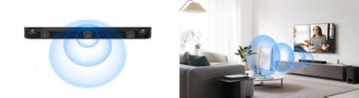 バースピーカーの左右にイネーブルドスピーカーを搭載。天井に音を反射させることでオーバーヘッドサウンドを実現します。天井にスピーカーを設置することなくシンプルな設置で3次元の立体音響が可能です。