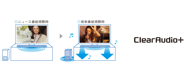 サウンドフィールド「ClearAudio+」を選ぶと、入力されたコンテンツごとに、最適なサウンドフィールドに自動で選択します。