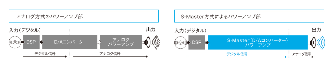 スピーカーを駆動するアンプには、小型で電力効率に優れたソニー独自のデジタルアンプ「S-Master」を搭載。本体内での音質劣化を最小限に抑え、原音に忠実な再生を実現しています。テレビ音声をはじめ、映画などの高品位なコンテンツを迫力あるサラウンドで楽しめます。