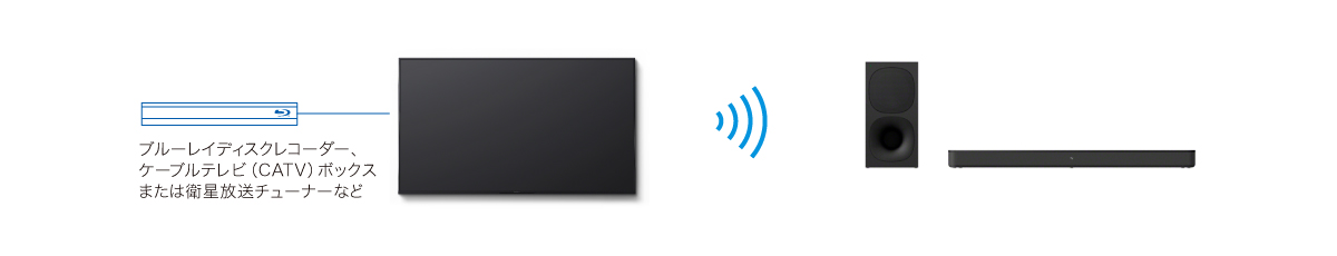 ソニー製Bluetooth(R)機能搭載テレビをお使いの場合、テレビとBluetooth機能でつないで、テレビやテレビにつないだ機器の音声をワイヤレスで聞くことができます。またテレビの電源をON/OFFすることで、サウンドバーも連動して動作するので手間も省けて便利です。