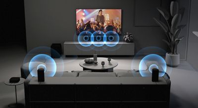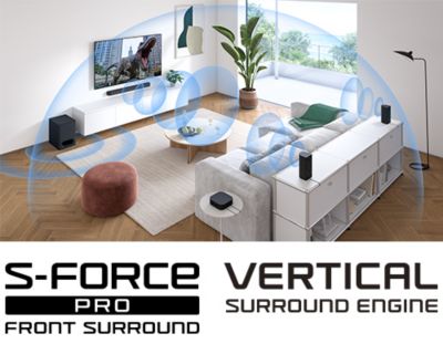 別体の大口径サブウーファーによる迫力の重低音とリアスピーカーによる5.1chリアルサラウンドとソニー独自のバーチャルサラウンド技術を融合。リアルな音の迫力と、空間に広がるバーチャルサラウンドの奥行きが重なり合い、臨場感あふれる音響体験を実現します。また、立体音響コンテンツだけではなくテレビ番組などの2chコンテンツもアップミックスし、3次元の立体音響でお楽しみいただけます。