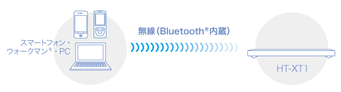 Bluetooth対応により、スマートフォン、PC、ウォークマン(R)などのBluetooth対応のオーディオ機器に保存された音楽をワイヤレスで簡単に操作し、約10m以内(*)の通信が可能なので、部屋中どこからでも、お好きな音楽を快適に楽しむことができます。