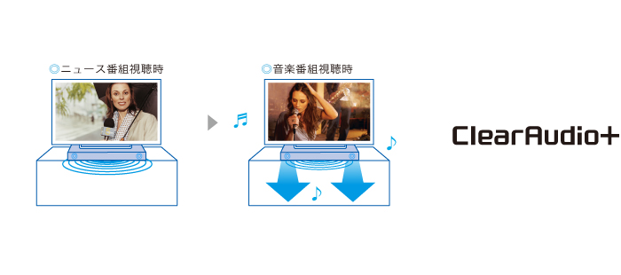サウンドフィールド「ClearAudio+」を選ぶと、入力されたコンテンツごとに、最適なサウンドフィールドに自動で選択します。