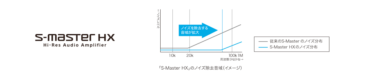 ソニーが長年培ってきた高音質デジタルアンプ技術「S-Master」をハイレゾリューション・オーディオフォーマットに対応させた「S-Master HX」。ハイレゾ音源の再生帯域におけるノイズ除去性能の改善により音質を向上させました。小音量から大音量までディテールを維持した高音質を実現し、迫力ある低音のエネルギー感や、繊細な空気感までリアリティー豊かに再現します。