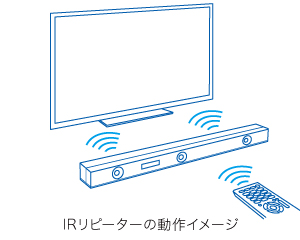 バータイプスピーカーの背面にIRリピーターを装備。テレビ用のリモコン信号を受信し、背面からテレビに向けて送信します。テレビの前に置いたときでも使いやすさを損なわず、快適にテレビ操作ができます。