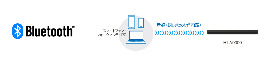 Bluetooth(R)対応によりスマートフォン、PC、ウォークマン(R)などのBluetooth(R)対応のオーディオ機器から音楽をワイヤレスで簡単に操作し、約30m以内(*)の通信が可能なので、部屋中どこからでもお好きな音楽を快適に楽しむことができます。また、本機のBluetooth(R)スタンバイ機能(*)をオンにしておけば、スピーカーの電源を切っておいてもBluetooth(R)機器で電源を入れられます。離れたところからでも電源を入れられるので、わざわざスピーカーまで近寄る必要もありません。外でヘッドホンで聞いていた音楽を家に帰ってスピーカーで続けて楽しむのも、この機能を使えば簡単にすばやくできます。