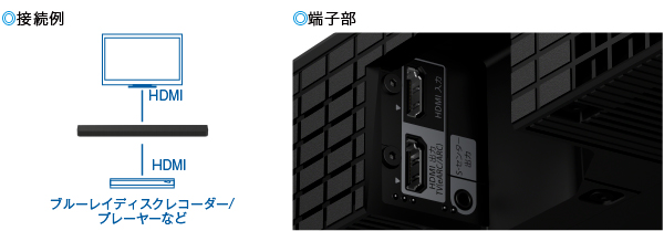 8K HDR/4K 120/4K HDRパススルー対応のHDMIの入力を1系統搭載。ブルーレイディスクレコーダー/プレーヤー、PS5/PS4などのゲーム機などを接続可能。テレビに接続する場合よりも、高音質で臨場感豊かなサラウンドを楽しめます。
