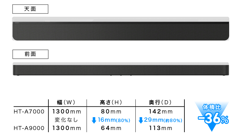 * 体積比、前機種(HT-A7000)との比較において