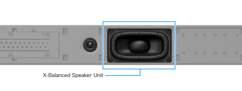 音の歪(ひず)みを低減するため楕円形の振動版を採用した「X-Balanced Speaker Unit」を8基搭載。音の解像感が向上し、クリアな高音質を再現します。フロント/センタースピーカー部のウーファー・サイドスピーカー・イネーブルドスピーカーのそれぞれに「X-Balanced Speaker Unit」を採用しています。