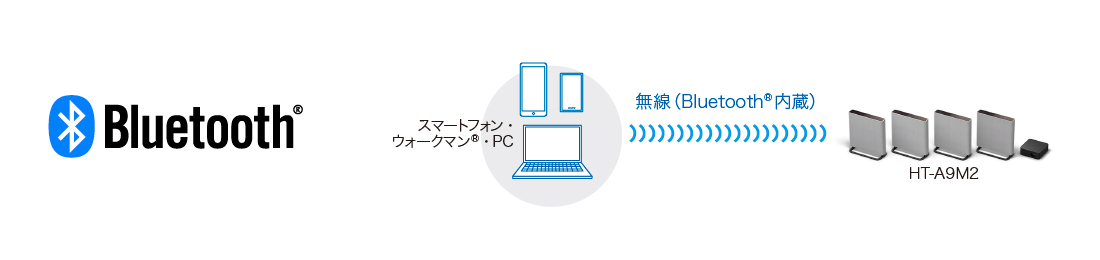 Bluetooth(R)対応によりスマートフォン、PC、ウォークマン(R)などのBluetooth(R)対応のオーディオ機器から音楽をワイヤレスで簡単に操作し、約30m以内(*)の通信が可能なので、部屋中どこからでもお好きな音楽を快適に楽しむことができます。また、本機のBluetooth(R)スタンバイ機能(*)をオンにしておけば、スピーカーの電源を切っておいてもBluetooth(R)機器で電源を入れられます。離れたところからでも電源を入れられるので、わざわざスピーカーまで近寄る必要もありません。外でヘッドホンで聞いていた音楽を家に帰ってスピーカーで続けて楽しむのも、この機能を使えば簡単にすばやくできます。