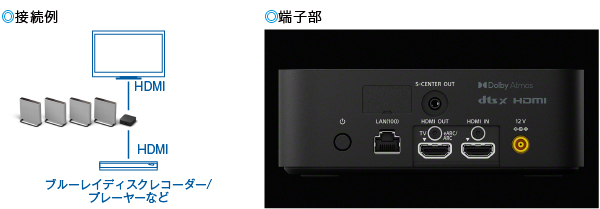 8K HDR/4K 120/4K HDRパススルー対応のHDMIの入力を1系統搭載。ブルーレイディスクレコーダー/プレーヤー、PS5/PS4などのゲーム機などを接続可能。テレビに接続する場合よりも、高音質で臨場感豊かなサラウンドを楽しめます。