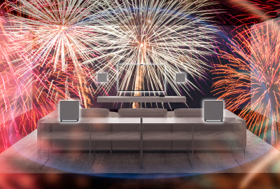 コントロールボックスはTVとHDMIで接続し、4つのスピーカーはコントロールボックスと無線でワイヤレス接続します。4つのスピーカーは必ずしも正方形に設置する必要はありません。また高さを合わせる必要もありません。音場最適化技術により、スピーカー間や天井までの距離を内蔵マイクで自動計測し、スピーカーの置かれている空間を把握。その情報を元に広大な音場空間を創り出し、リビングが音で満たされるような新しい360立体音響を体験できます。