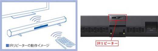 テレビの前にスピーカーを置いても、テレビのリモコン操作が快適にできるよう、テレビのリモコン信号をスピーカーからテレビへパススルーするIRリピーター機能を搭載。