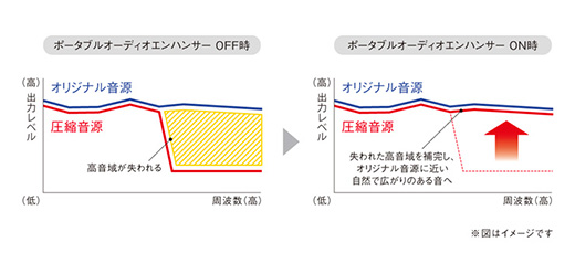 音楽信号を圧縮する過程で失われがちな高域信号成分を高精度なデジタル処理によって再現し、クリアで伸びやかなサウンドを楽しめます。