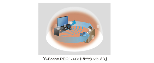 前方のスピーカーだけで、音場の「広がり」と「視聴位置から画面方向への奥行き感」を再現し、包み込まれるような豊かなサラウンド感を実現するのが、「S-Force PRO フロントサラウンド 3D」の効果。上方へも広がる音づくりにより、画面の高さに合ったセリフの定位を実現し、映像の世界に集中できます。3D、2D問わず、どんなコンテンツも、上質なサラウンド空間を再現します。