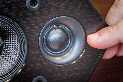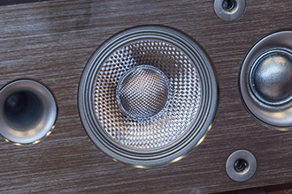 左右両端のソフトドームトゥイーターはユニット周囲も外側に微妙に曲げている