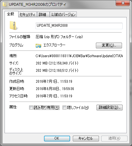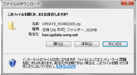 UPDATE_M34R2008.zipのサイズが202 MB (212,158.340 バイト)であればダウンロードは正常に完了しています。もし、上記以外の数値の場合はダウンロードに失敗していますので、このファイルを破棄し再度、ダウンロードを実行してください。