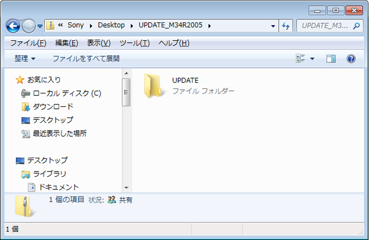 アップデート用ファイルはUPDATE_M34RXXXX.zipになります。(XXXXがソフトウェアのバージョンです。)