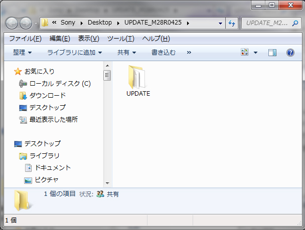 [1]PCを使用してアップデートファイルをUSBメモリーに転送します。