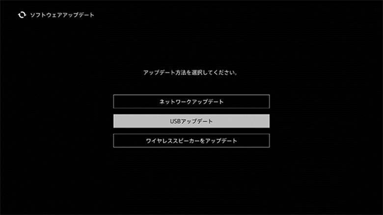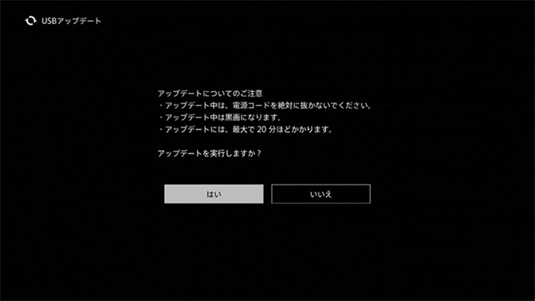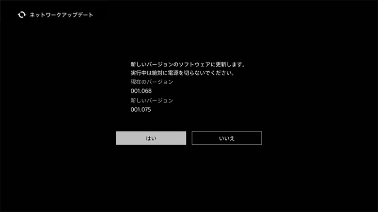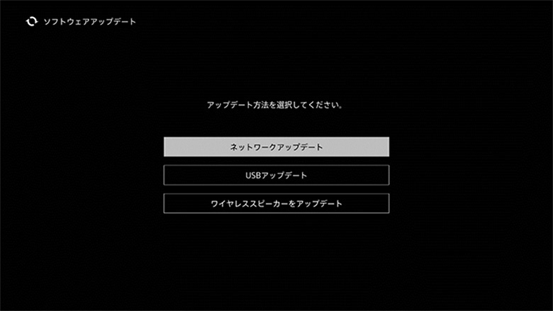 すでに本機をインターネットに接続済みの場合、ソフトウェアアップデートが必要ならば自動的にホームメニュー下段に「ソフトウェアアップデート」が表示されます。これを選択し、「はい」を選べば、そのままネットワークアップデートが実行されます。