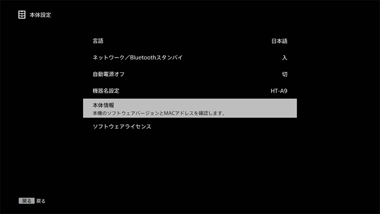 ホームシアターシステム「HT-A9」バージョン確認方法
