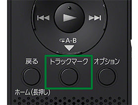 再生時の頭出しや分割位置の目印にできるトラックマークを付けられます。録音/再生/録音一時停止中にトラックマークボタンを押すだけで、録音部分にトラックマークを記録。マークを付けた位置からいつでも再生が可能になります。1つのファイルに98個まで設定できます。