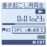 再生速度を0.25倍速から3倍速の間で調節できます。音程はデジタル処理により自然に近いレベルで再生できるので、語学学習の際の聞きとりや議事録の作成に便利です。
