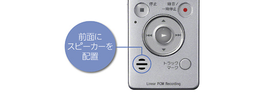再生しながら音声を聞きとりやすいよう、前面にスピーカーを配置。音声を聞きながら、早送り、早回しなどの操作ができます。語学学習や議事録作成の際に便利です。