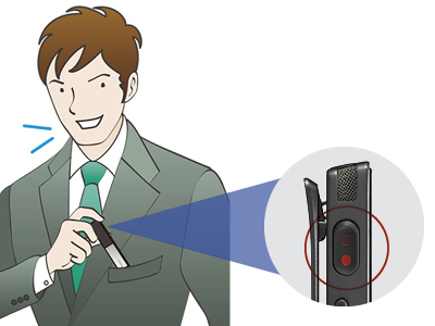 ポケットに入れたままでも動作表示ランプ(録音中は赤く、再生中は緑色に点灯)を確認できます。