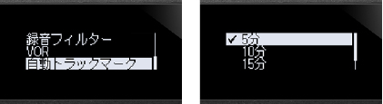 録音中、再生中、一時停止中に、1ファイルに最大98個までトラックマークを設定できます。また、「自動トラックマーク機能」を搭載しているので、5分、10分、15分、30分の設定をすることで、等間隔でトラックマークを自動追加することもできます。