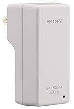 別売のUSB ACアダプター(AC-UD20)を使って、家庭用電源(コンセント)をつないで充電ができます。また、充電をしながらの使用もできるため、長時間録音をする場合などに電池切れを気にせず使用できます。
