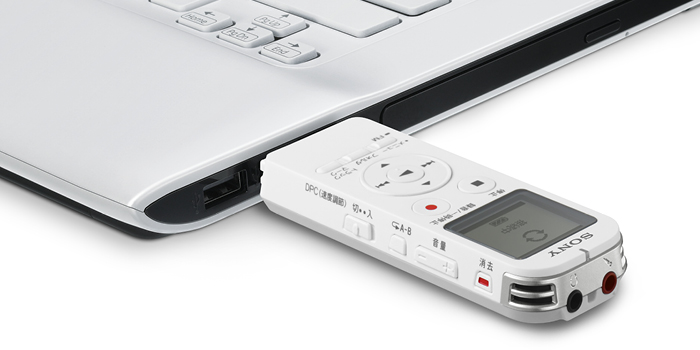 直接パソコンと接続できるスライド式USB端子を搭載。ケーブルいらずで音声や音楽ファイル、データを転送できます。また、パソコンと接続するだけで簡単にUSB充電が可能。乾電池でも使えるので、いざという時にも安心です。