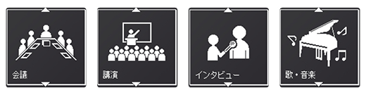 録音対象の両サイドの音を抑えることで、前方の音をしっかり録音。指向性が強く、狙った音にフォーカスできるので、講演会やセミナーなど広い会場での録音やインタビューに役立ちます。