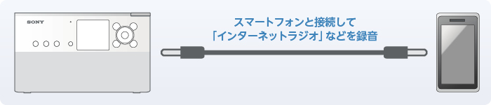 外部入力端子もタイマー予約録音に対応しているので、別売のソニー製オーディオコード(RK-G136/G139)でスマートフォンやパソコンなどを接続して、「インターネットラジオ」などの録音もできます。