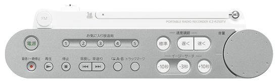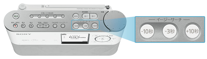 再生中に一定秒数(早送り10秒分/早戻し3秒分・10秒分)の早送り、早戻しができる「イージーサーチ」を搭載しているので、聞き取れなかった箇所をすぐに確認したり、不要な箇所をとばしたりすることができます。