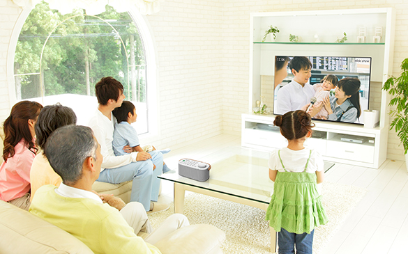 集音器としてだけでなく、ワイヤレスのテレビ用スピーカーとしても使用可能。付属のケーブルで充電台をテレビとつなぐだけのかんたん接続で、すぐにお楽しみいただけます。