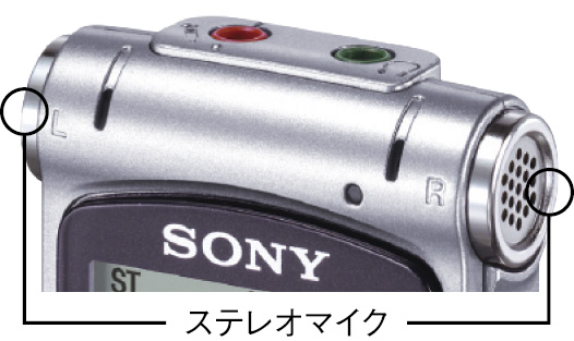 大口径のステレオマイクを内蔵し、周囲の音声をクリアに録音。付属の単一指向性マイクを使えば講演会や口述などのねらい録りもできます。