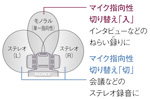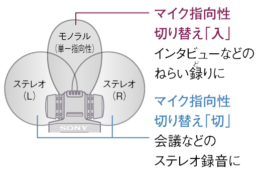 指向性を切り替えてねらった音を録音「高性能トリプルマイク」