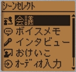 「会議」、「ボイスメモ」、「インタビュー」、「おけいこ」、「オーディオ入力」、「Myシーン」の6種の録音設定を搭載。さまざまな録音シーンに合わせて、録音モードやマイク感度などの録音に必要な項目を、一括でおすすめの設定に切り替えることができます。