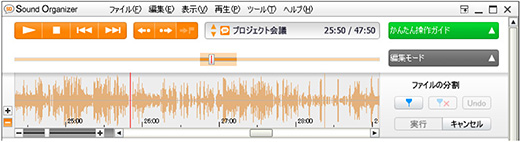 録音したデータを簡単に管理・編集できるソフトウェア「Sound Organizer」。会議の議事録作成、語学学習、音楽再生などをサポート。パソコンならではの楽しみが広がります。